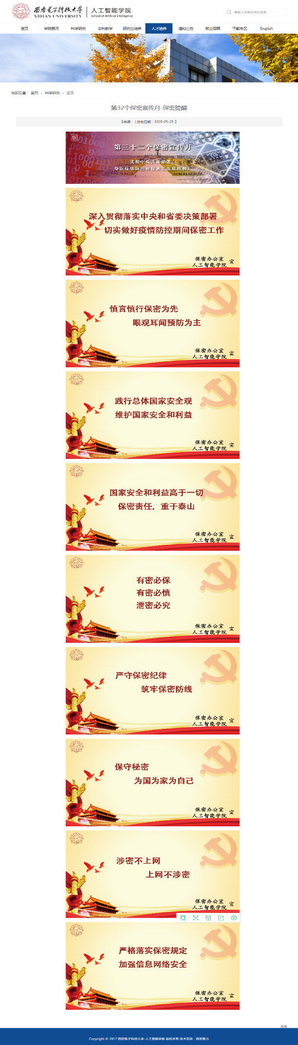 此外,beat365中文官方网站还制作了宣传标语、案例警示和系列学习资料清单,以展板、邮件、微信、学院网站和走廊电子屏幕等多种形式发布保密宣传教育相关信息,全方位向全体教师和广大学生推送保密提醒。