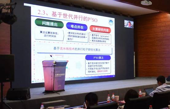 詹志辉教授首先介绍了大规模优化问题和进化计算方法的背景。人类活动是从盲目性、随机性到最优化、智能化的演变,最优化是人类智能活动的核心,出现在生产实践,科学研究和社会活动的众多问题中,可以归结为最优化问题,以实现智能化。复杂优化算法的数学模型难以表达,使得传统优化方法难以适应,而进化计算优化算法通过模拟自然界群体智能,不依赖问题的数学特性,从而简单易用,可以快速得到最优解,成为求解众多智能化复杂问题的重要途径。随着物联网,云计算,大数据的发展,优化问题变得越来越复杂。詹教授介绍了大规模优化问题的特点和挑战,以及进化计算求解大规模问题的主要思路,并给出了大规模分布式进化算法如何避免局部最优、如何加速算法收敛和如何减少运行时间三个关键问题。可使用多个设置不同的种群,提高种群多样性,避免局部最优,让多个种群协同演化,搜索信息共享,加速算法收敛,使用并行计算范式,分配任务给不同的计算资源,减少运行时间。研究动机和思路是使用分布协同技术来改进进化算法。詹教授分享了近几年在并行分布式进化计算方法研究及其应用方面的工作,并且针对大规模优化问题,围绕分布式演化方法,提出三种针对大规模问题的分布式演化算法(分布式协同的Cloudde、自适应控制的AGLDPSO和并行化处理的P3SO),解决两个大规模应用(大规模供应链优化、大规模云工作流调度优化)问题。