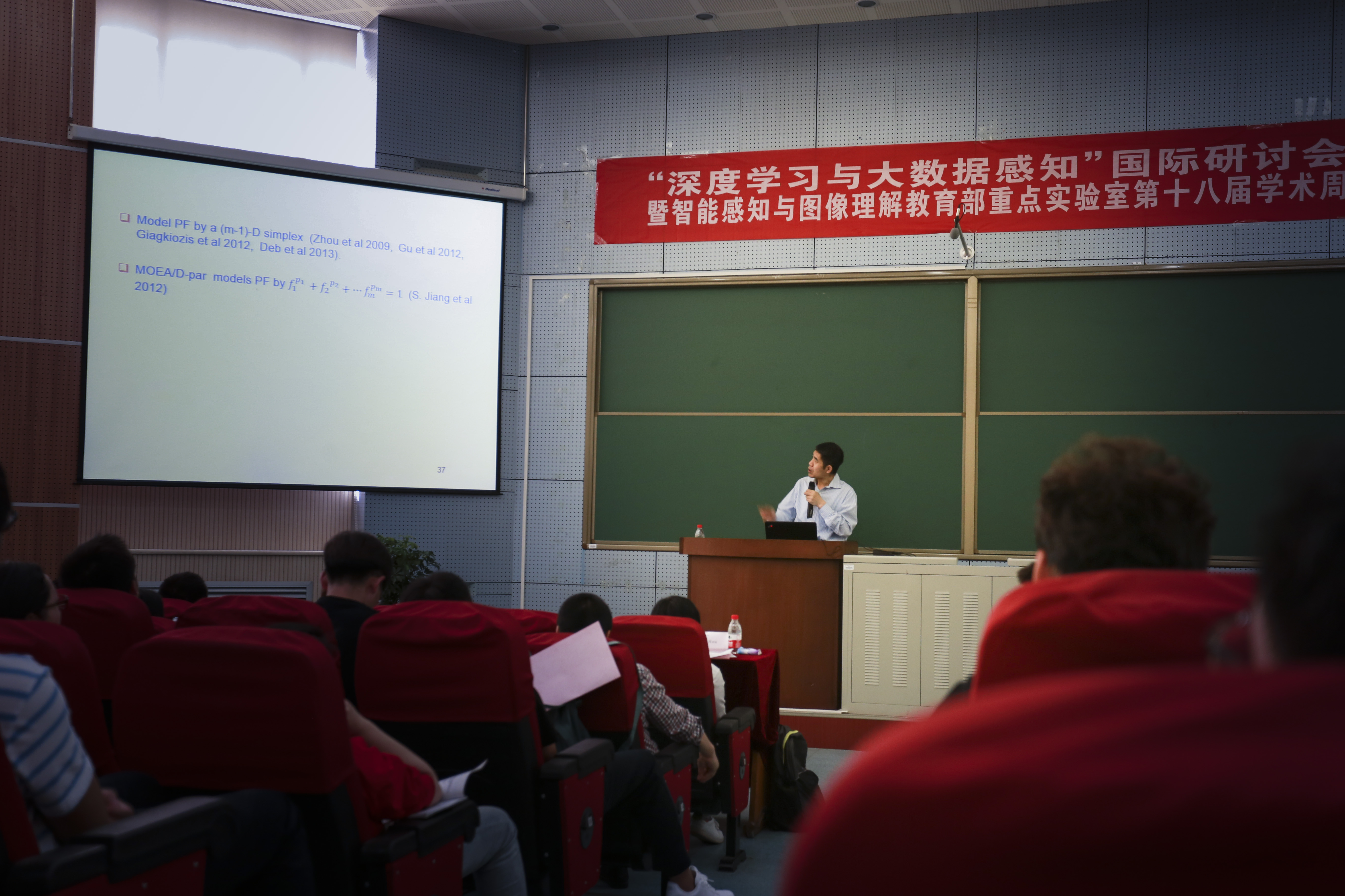 25日上午8:30分“深度学习与大数据感知”国际研讨会在beat365中文官方网站侯彪教授的主持下正式开幕,在25日到28日4天的学术活动中共有45场精彩的学术报告呈现,由领域顶尖专家学者、新锐企业领导者及刻苦钻研的学生共同展现了多样化的学术理念与实践应用,每场报告都座无虚席,走道也站满了学生,报告厅成为了一片浩荡的求知之海洋,每一朵浪花都饱含着新知与思考。45场报告涉及了“基于脑认知机理的条件证据理论及其深度学习方法”、“Multi-objective Bayesian Optimization”、“高分辨率图像智能处理技术”、“Scene Representation and Classification from Remote Sensing Images Based on Deep Learning”、“深度学习影像感知及解译”、“数据驱动的进化优化”、“面向机器人灵巧操作的认知传感与大数据处理”、“大数据、云计算、物联网-计算智能的研究前沿与应用”、“变分贝叶斯联合优化及应用”、“头脑风暴优化算法”、“Online Ensemble Learning of Class Imbalance Data”、“Current Hot Topics in Many-Objective Optimization”、“Online Growing Neural Gas for Anomaly Detection in Changing Surveillance Scenes”、“类脑计算的理念与实践”、“复杂场景中人群行为的研究及其应用”、“Remote Sensing and Media”、“协同过滤算法关键性技术及其稀疏性研究”、“概率分类学习”、“无人车场景计算与自主运动”、“大数据时代模式识别的机遇与挑战”、“语义通讯”、“What Can Evolutionary Algorithms Do on Complex Network”等各科研领域与课题。