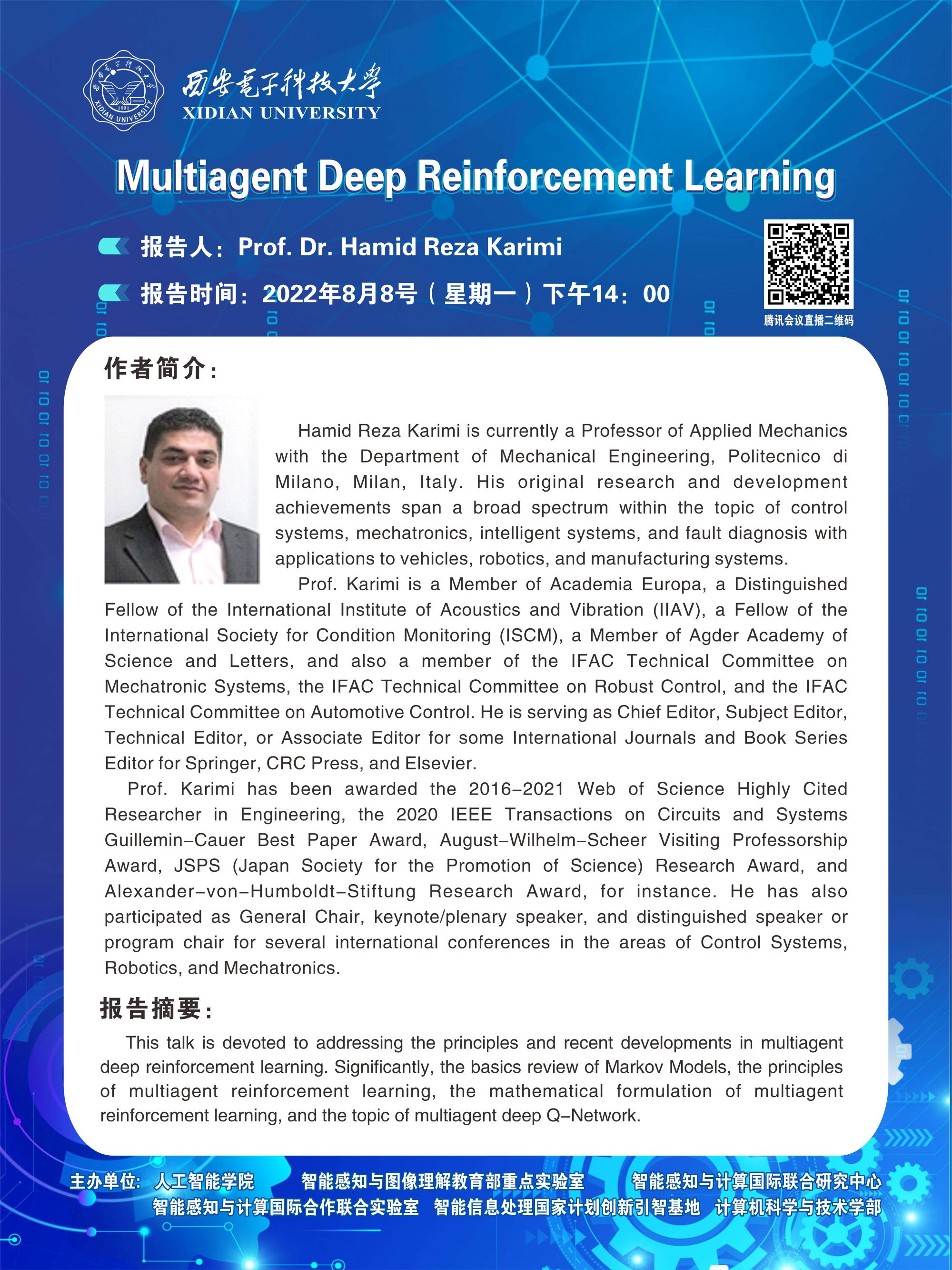 【讲座通知】Prof. Dr. Hamid Reza Karimi:Multiagent Deep Reinforcement Learning