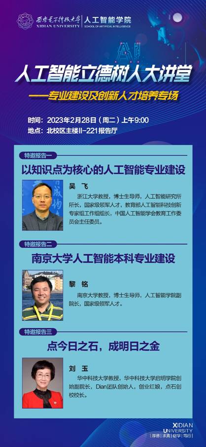 特邀报告|“人工智能立德树人大讲堂”之专业建设及创新人才培养专场明日开讲