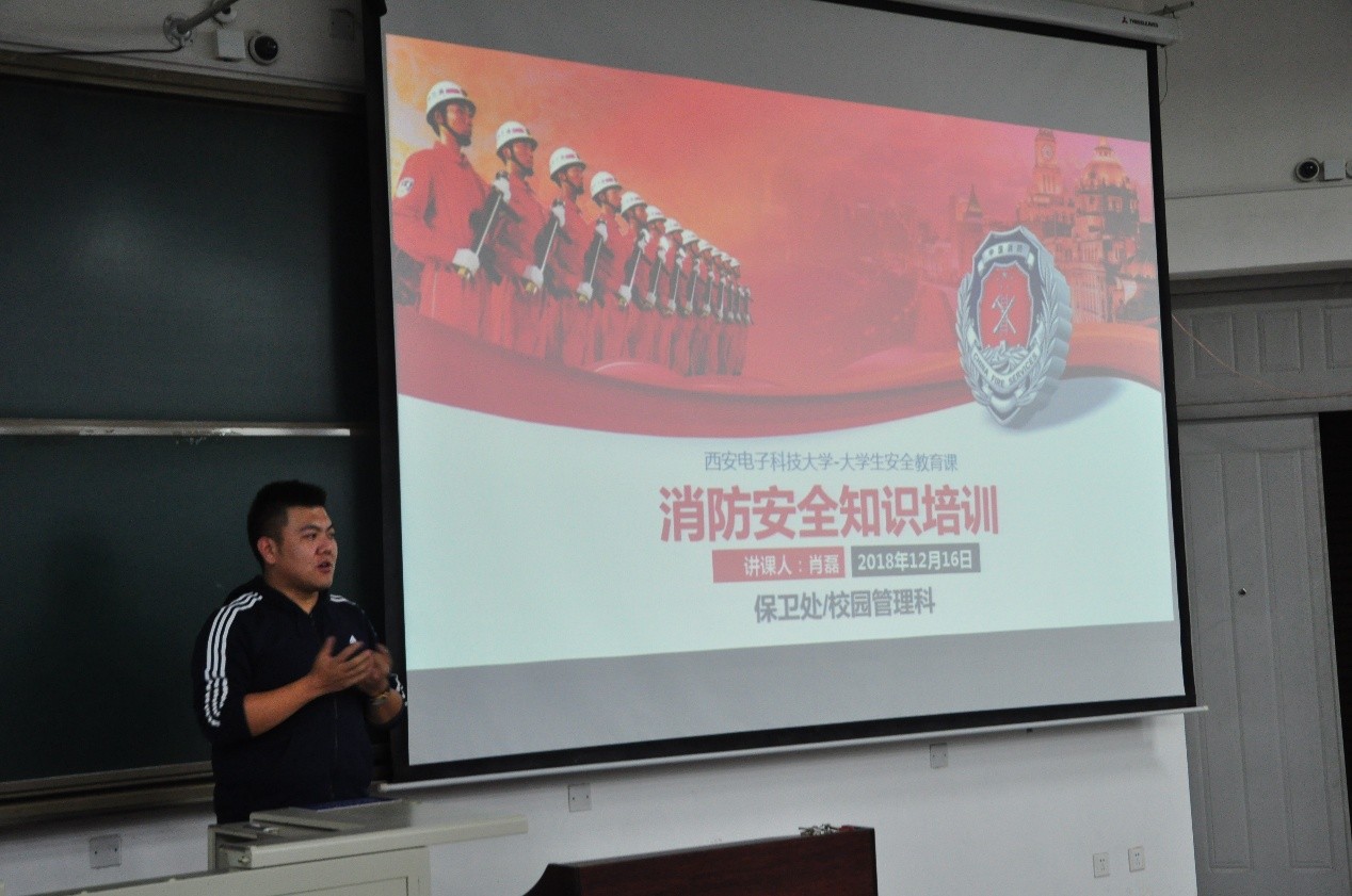 在专题培训课上,肖老师采用PPT讲授+现场演示的方式进行授课,内容涉及广泛,包含:容易引发火灾的消防安全隐患;宿舍电器设施、设备正确使用方式;火情紧急情况处置;鉴别灭火器是否有效和正确的使用及灭火器材的使用方法;火灾应急疏散常识;宿舍必备灭火器材等。他还结合大量现实事故案例深刻剖析了火灾发生的根源,案例现场触目惊心画面,让每位同学切身感受到火灾的无情及掌握消防知识的必要性和重要性,极大增强了同学们自救自护能力。