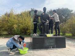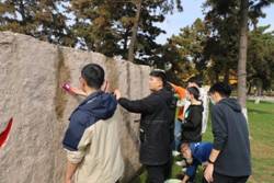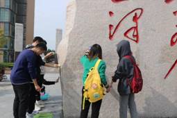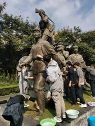 中午12点饭后,大家自带清洁用品前往东门”全心全意为人民服务“石碑集合。在班级劳动委员的组织下,大家被分为五组各自前往校园内主要的雕像。