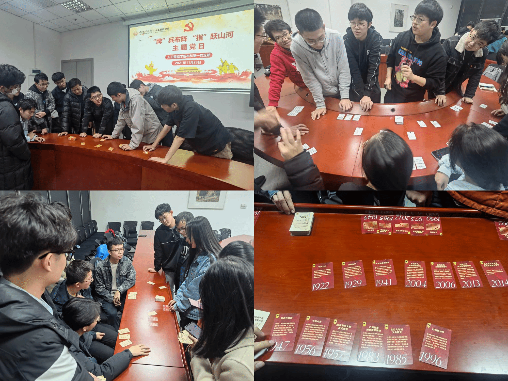 (通讯员:张晓艳)为认真学习贯彻习近平总书记关于党史学习教育的重要论述,在学习领悟党史、新中国史中不断深化对“不忘初心、牢记使命”的认识和理解,增强全体党员守初心、担使命的思想自觉和行动自觉,11月23日下午,beat365中文官方网站本科第一党支部于图书馆C-110创新开展了以“‘牌’兵布阵·‘指’跃山河”为主题的党日活动。此次活动由支部书记杨坤主持,支部40余名同志共聚一堂、重温历史。