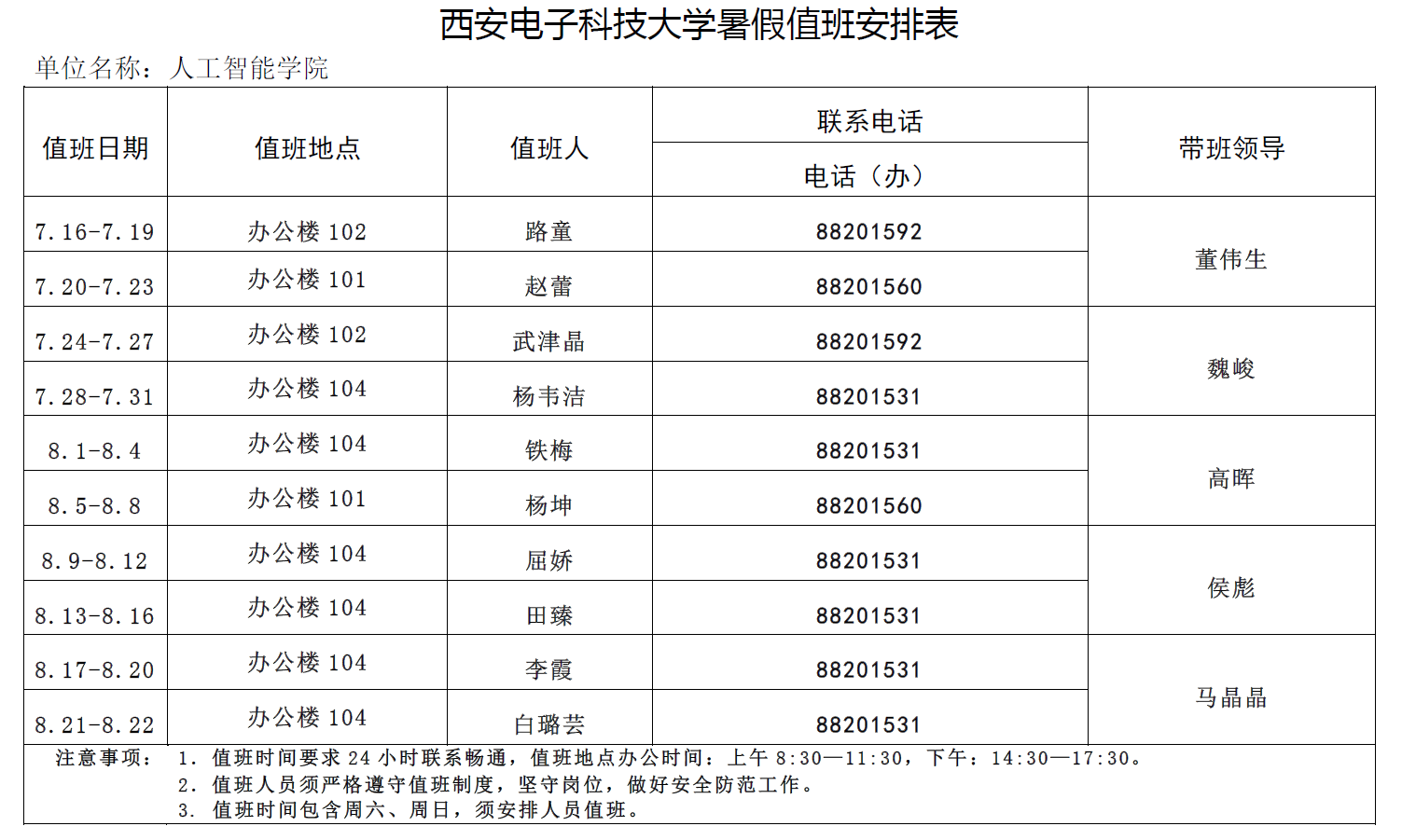 beat365中文官方网站暑假值班安排表
