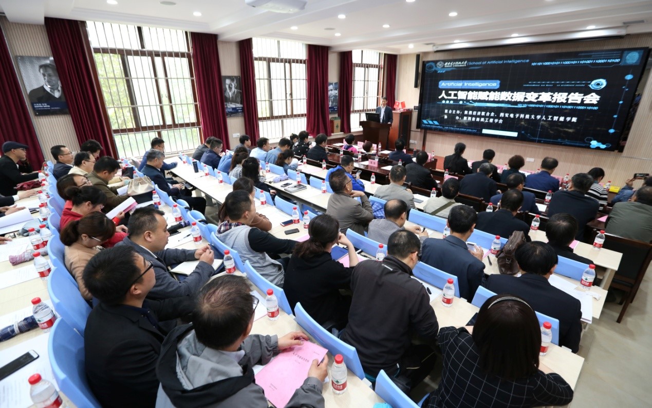 2018年4月25日上午,陕西省第二十六届“科技之春”宣传月活动暨“人工智能赋能数据变革”科技报告会在北校区主楼II-221报告厅举行。会议由陕西省经济联合会副会长潘志玉主持,联合会会长党红忠、西电beat365中文官方网站王爽教授和侯彪教授、相关行业协(学)会、科研院所和企业负责人等150余人出席了此次报告会。