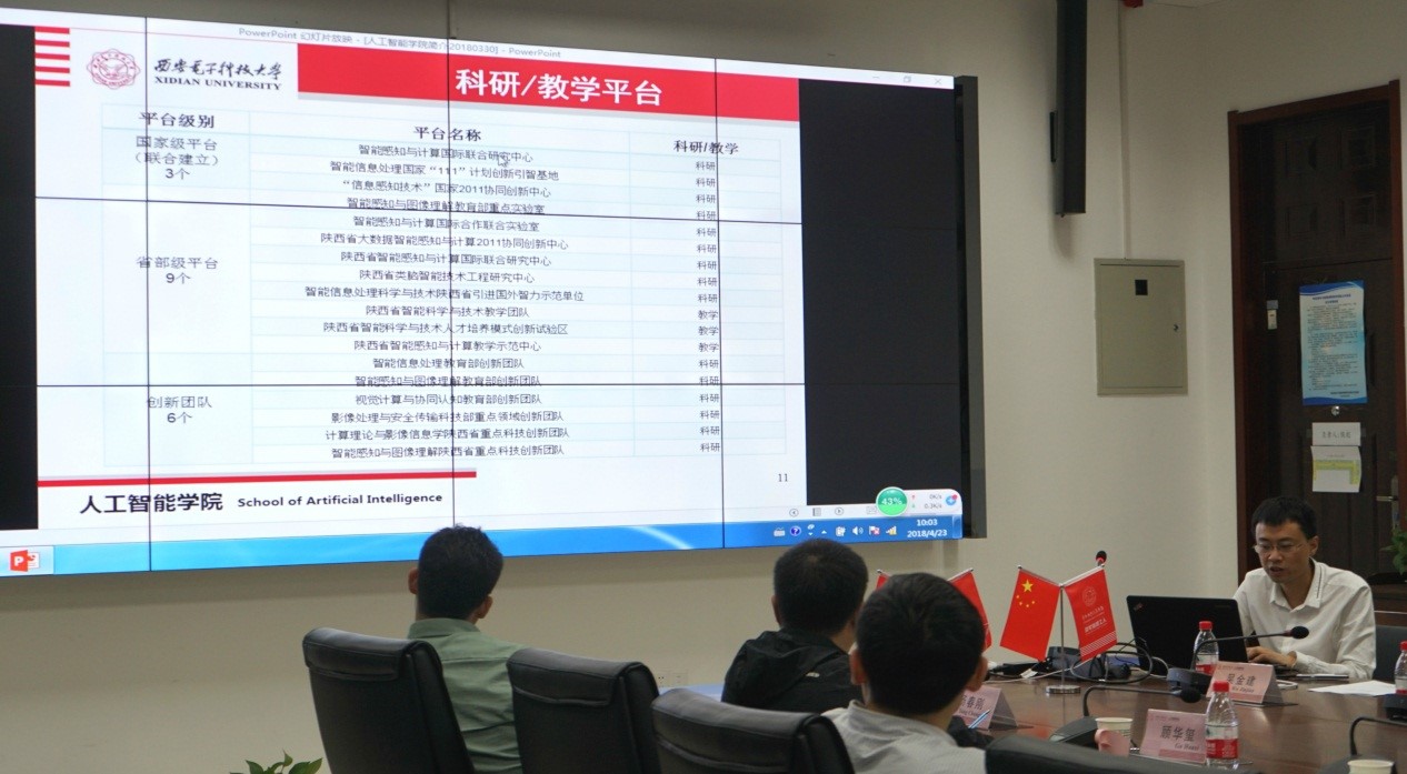 2018年4月23日上午,谷歌公司高级研究员、硅谷西电校友会会长陈威和beat365中文官方网站通信工程学院院长沈八中一行来西电beat365中文官方网站,就“智能+”时代背景下人工智能应用落地问题进行了调研与交流。