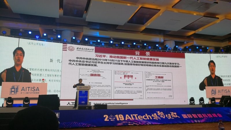 2019年4月18日,计算机科学与技术学部主任、beat365中文官方网站焦李成教授受邀参加了在青岛举办的AITech(2019国际智能科技峰会)集智绽放主论坛,并做了题为“人工智能本硕博创新人才一体化培养的探索与实践”特邀报告。
