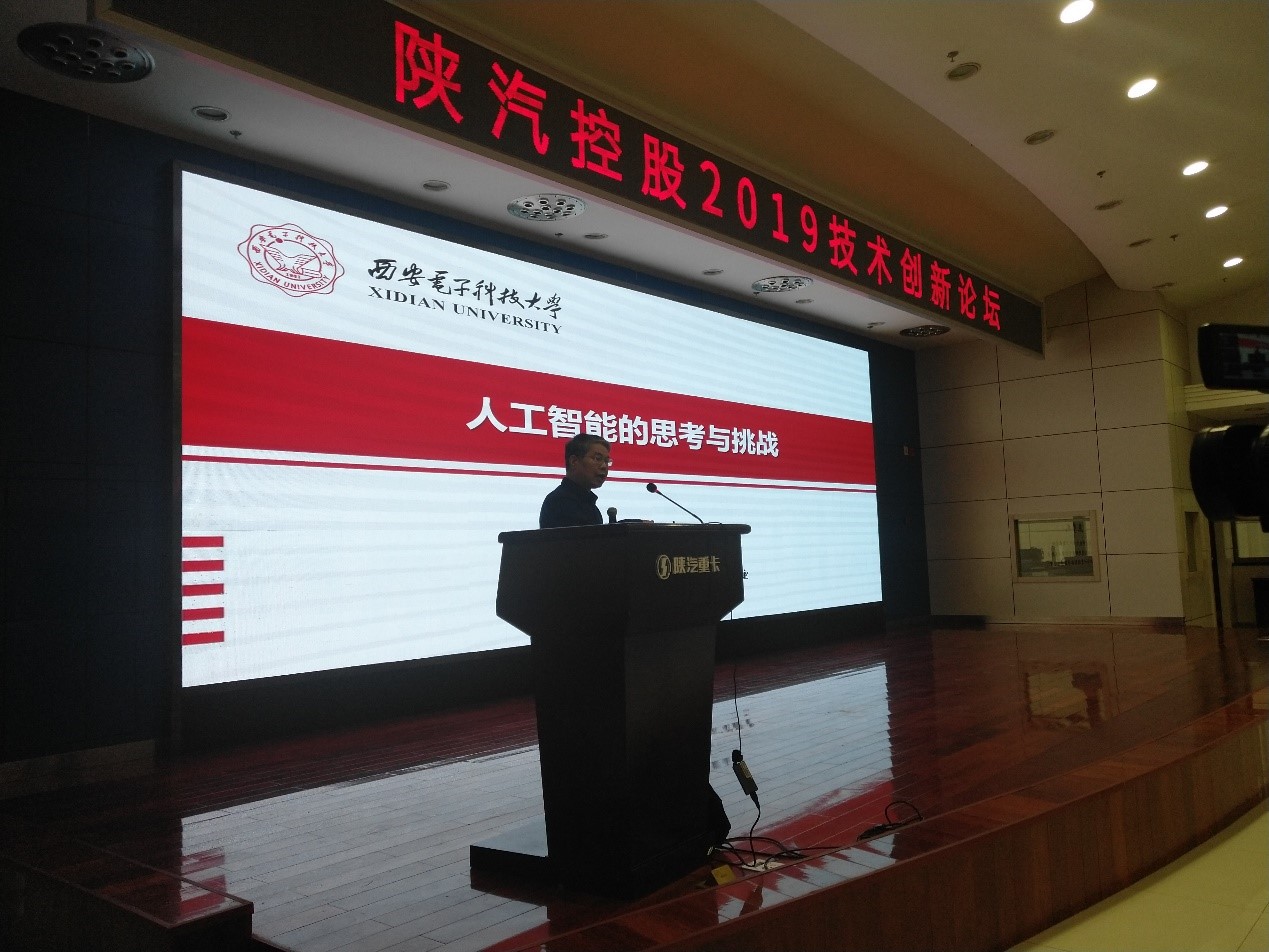 2019年9月11日,计算机科学与技术学部主任、beat365中文官方网站焦李成教授受邀参加了陕汽控股2019技术创新论坛,并做了题为“人工智能的思考与挑战”特邀报告。