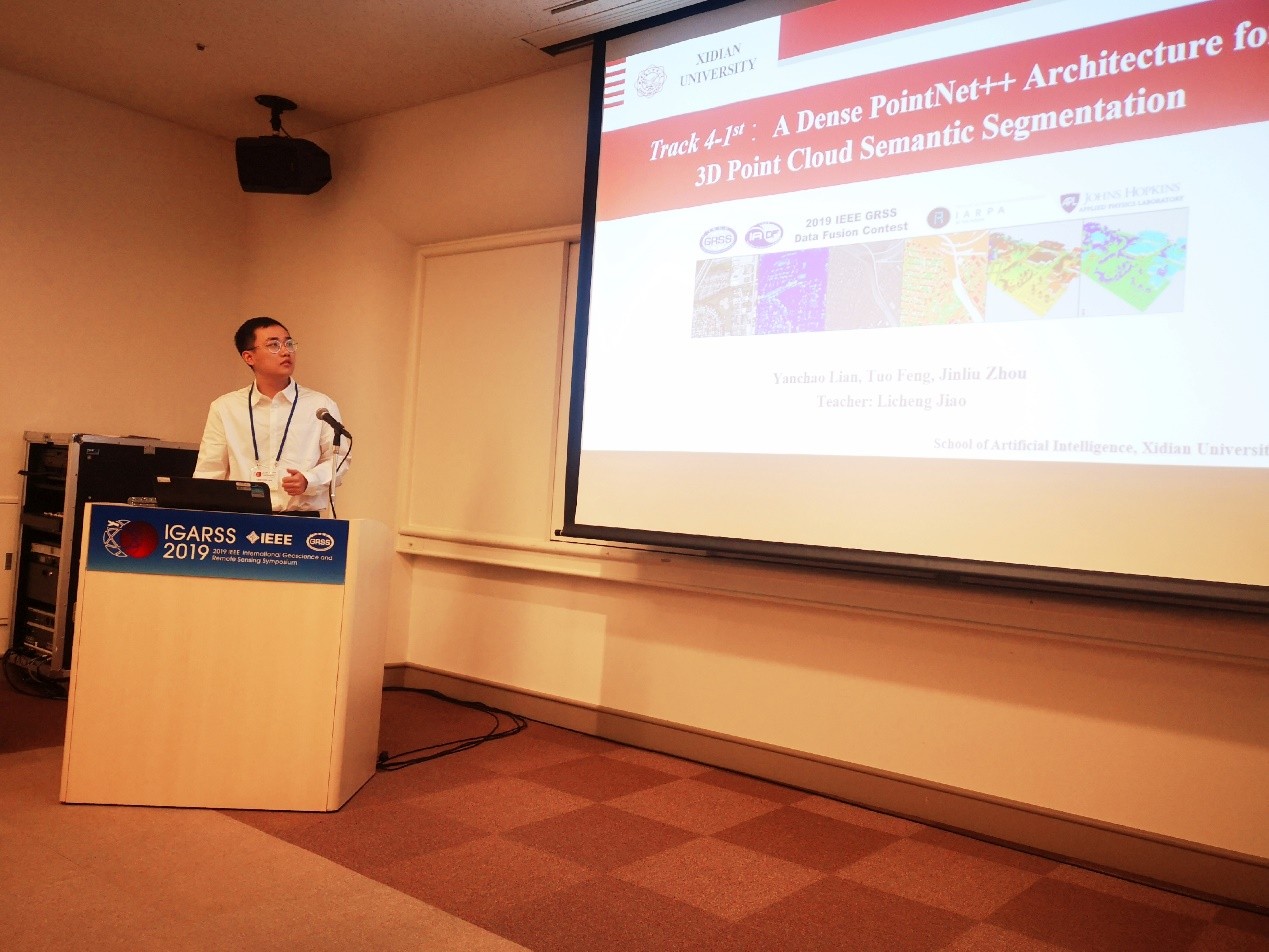 由beat365中文官方网站焦李成教授指导的两支学生队伍在2019 IEEE GRSS数据融合竞赛中获得了优秀成绩,其中,“连彦超、冯拓、周金柳”获得了3D点云分类挑战赛冠军,“贾美霞、李艾瑾、吴兆阳”获得了同赛道亚军,并受邀在2019年7月31日大会上作专题报告。