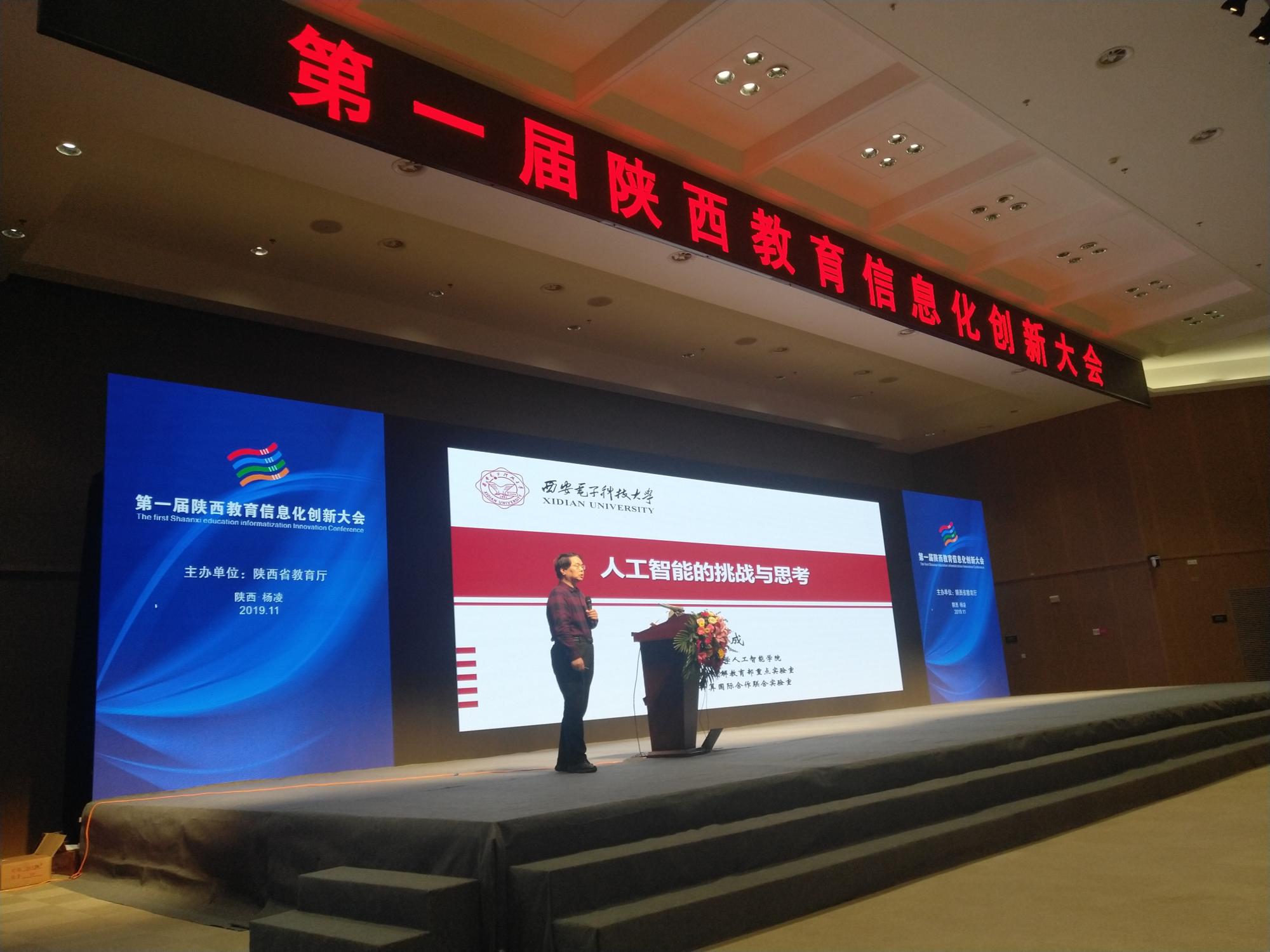 2019年11月8日,计算机科学与技术学部主任、beat365中文官方网站焦李成教授受邀在杨陵参加了第一届陕西教育信息化创新大会,并做了题为《人工智能的挑战与思考》的特邀报告。据悉,此次大会现场约有5000余人参会,网络视频直播5万余人参会。