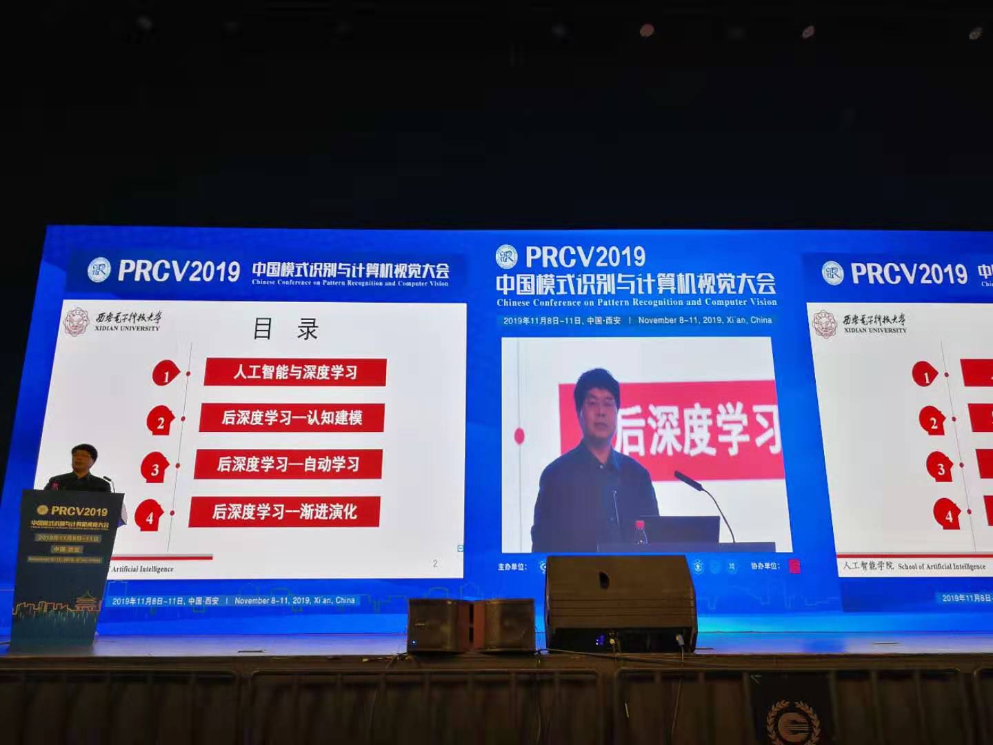 2019年11月9日,计算机科学与技术学部主任、beat365中文官方网站焦李成教授受邀参加第二届中国模式识别与计算机视觉大会(PRCV 2019),并在大会作了题为《后深度学习的挑战与思考》的主旨学术报告,报告中非常深刻的阐述了表征学习和深度学习概念与思考。据悉,本次大会注册人数超1750人,合计近2000人参会,盛况空前。