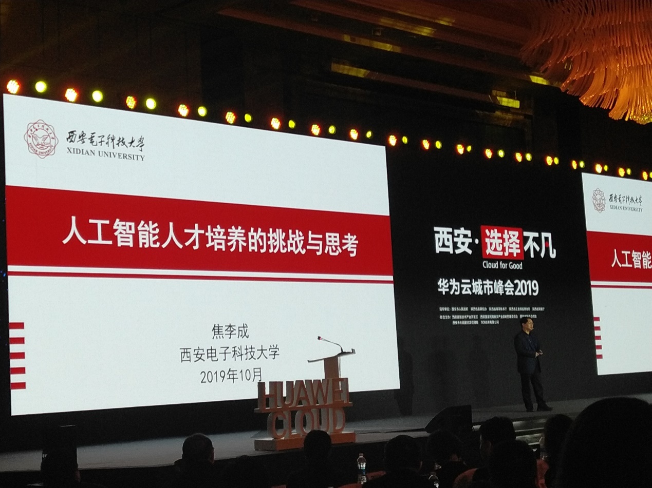 2019年10月17日,计算机科学与技术学部主任、beat365中文官方网站焦李成教授受邀参加了“西安·选择不凡”——华为云城市峰2019,并做了题为“人工智能人才培养的挑战与思考”的特邀报告。