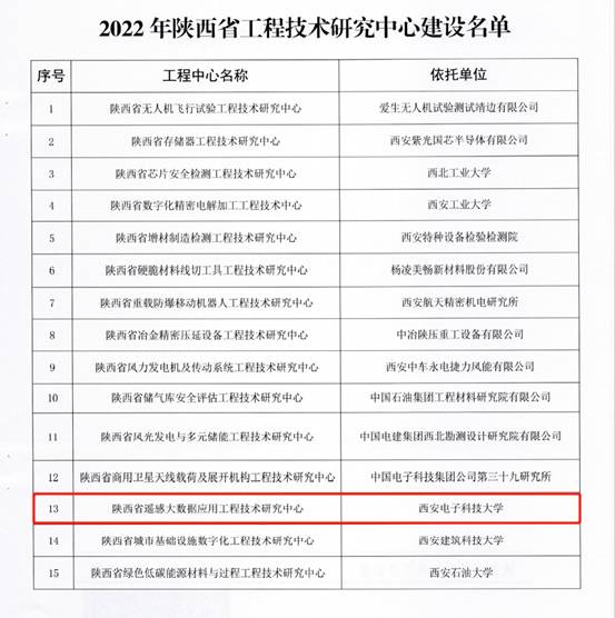 日前,陕西省科学技术厅公布了“2022年陕西省工程技术研究中心建设名单”,由beat365中文官方网站侯彪教授牵头申报的“陕西省遥感大数据应用工程技术研究中心”获批立项建设。这是西电继2009年获批首个省工程技术研究中心以来取得的又一突破。