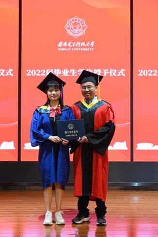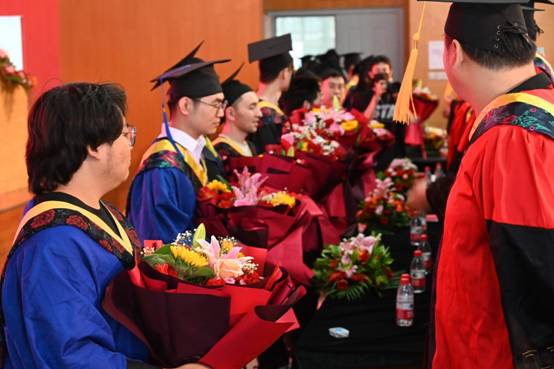 在激动人心的授位环节,首先由侯彪教授依次为校级优秀硕士学位获得者、本科优秀毕设论文获得者、本科优秀毕业生干部授位拨穗并颁奖。随后学院老师依次为毕业生颁授学位,执拨穗礼并合影留念,整个过程气氛热烈而不失庄严。
