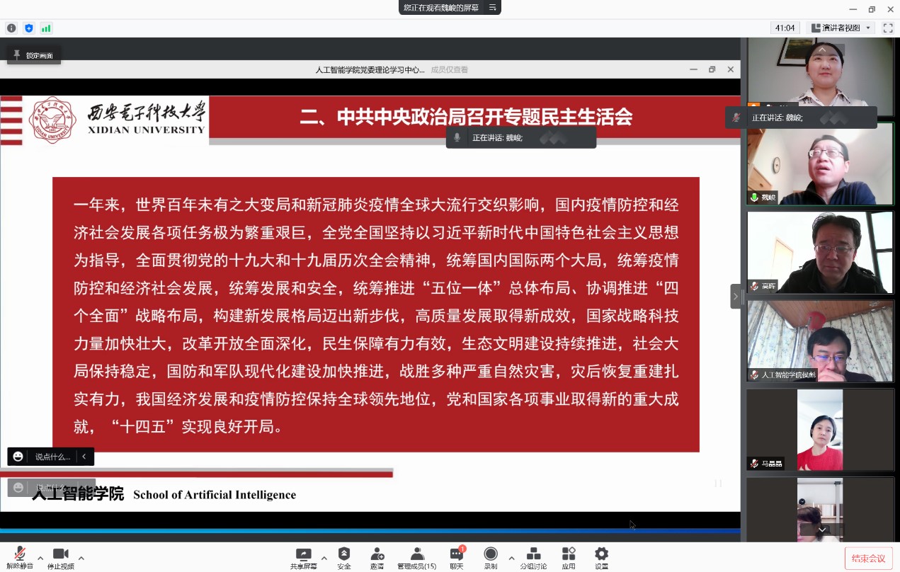 (通讯员:武津晶)1月12日上午,beat365中文官方网站召开党委理论中心组(扩大)学习视频会议,专题传达学习中共中央政治局党史学习教育专题民主生活会和党史学习教育总结会议精神,以及中央全面深化改革委员会第二十三次会议精神。学院党政班子、两委委员参加了集体学习,党支部书记、各系所代表等列席会议。会议由学院党委书记魏峻主持。
