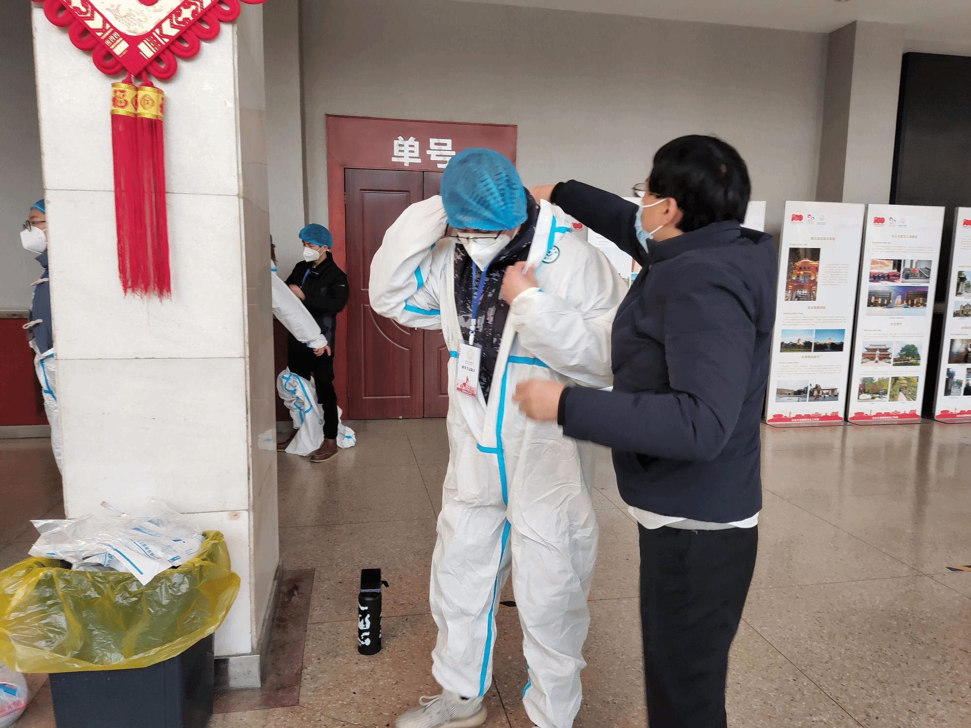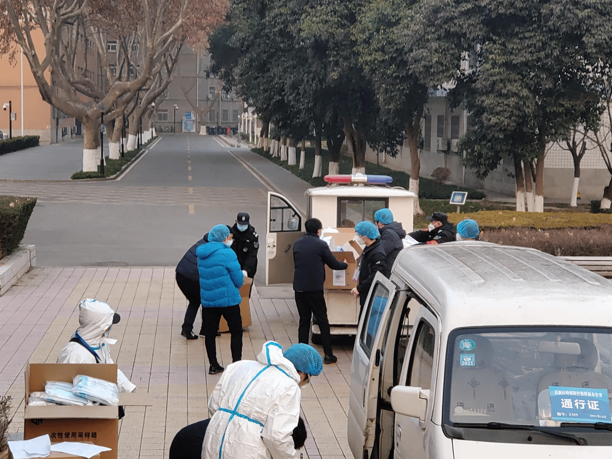 他们在几小时的志愿时间内不断重复着相同的动作,当被问及累不累时,博士第一党支部书记刘梦琨说:“我不觉得辛苦,能在国家特殊时期提供自己力所能及的帮助,我很开心。西安疫情突发,每一位志愿者的服务对于这个城市都是非常非常重要的,同学们对我们说的每一声‘谢谢’,都是对我们服务实效的最好证明。”