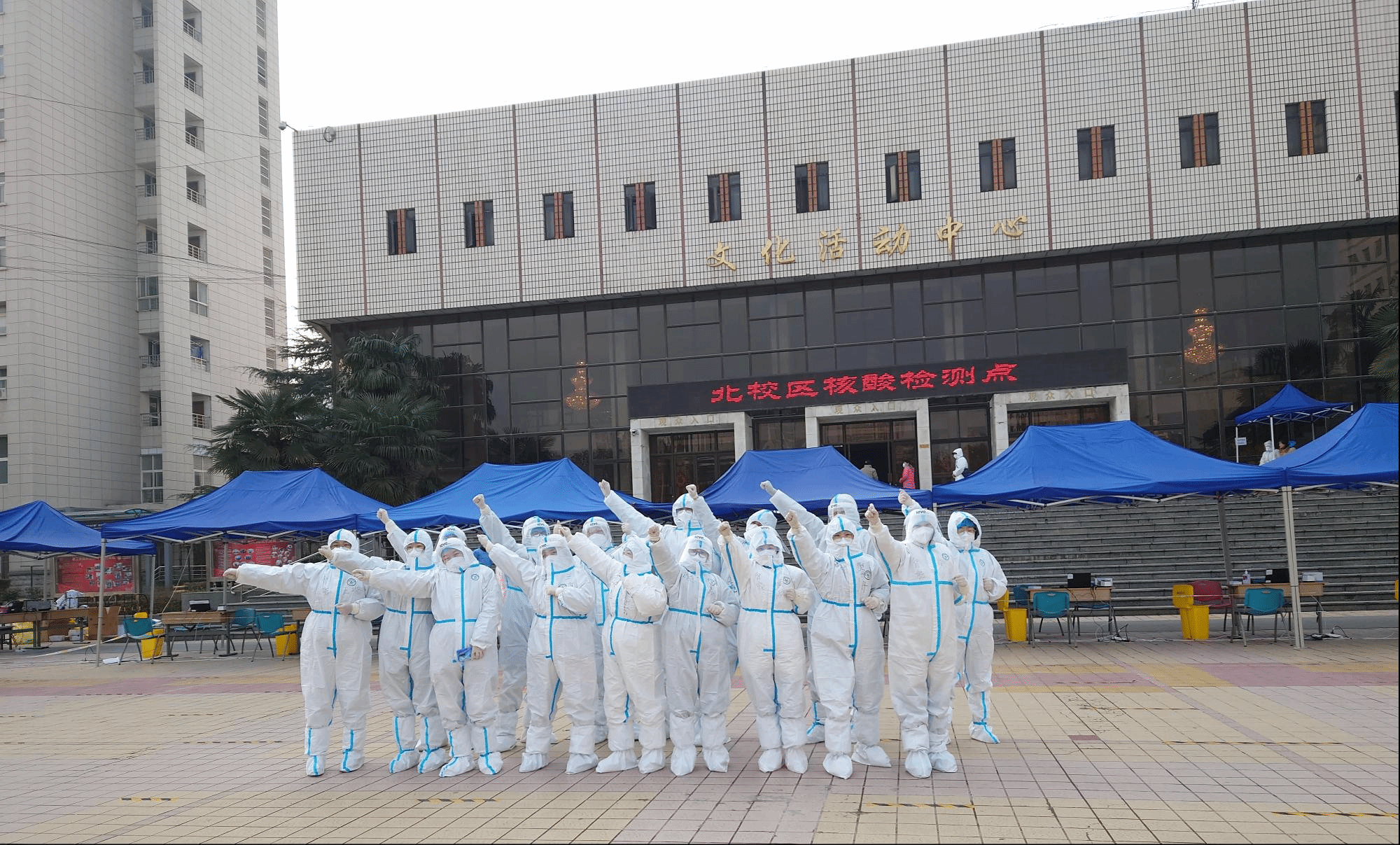 1月3日清晨,博士第一党支部支委成员早早来到北校区大礼堂,组织北校区核酸检测志愿服务工作,并将校友捐赠的暖宝宝带到防疫一线,送给志愿服务的同学们使用,希望能让同学们身暖、心更暖。